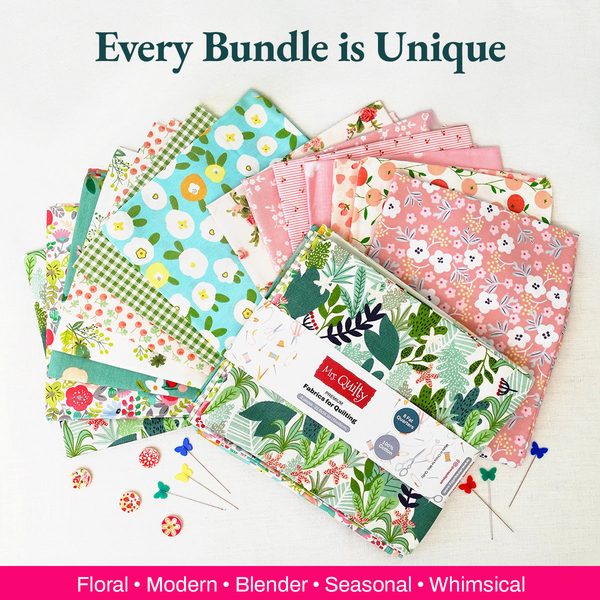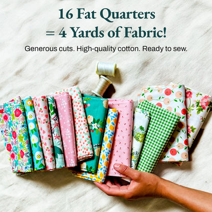 Every bundle is packed with beauty, excitement, and thoughtful choices. You’ll find 16 unique cotton fabrics, hand-picked and curated to make your quilts stand out. Each color and pattern was selected to work together, making it easy for you to create something truly special. Let your next project begin with a little magic.