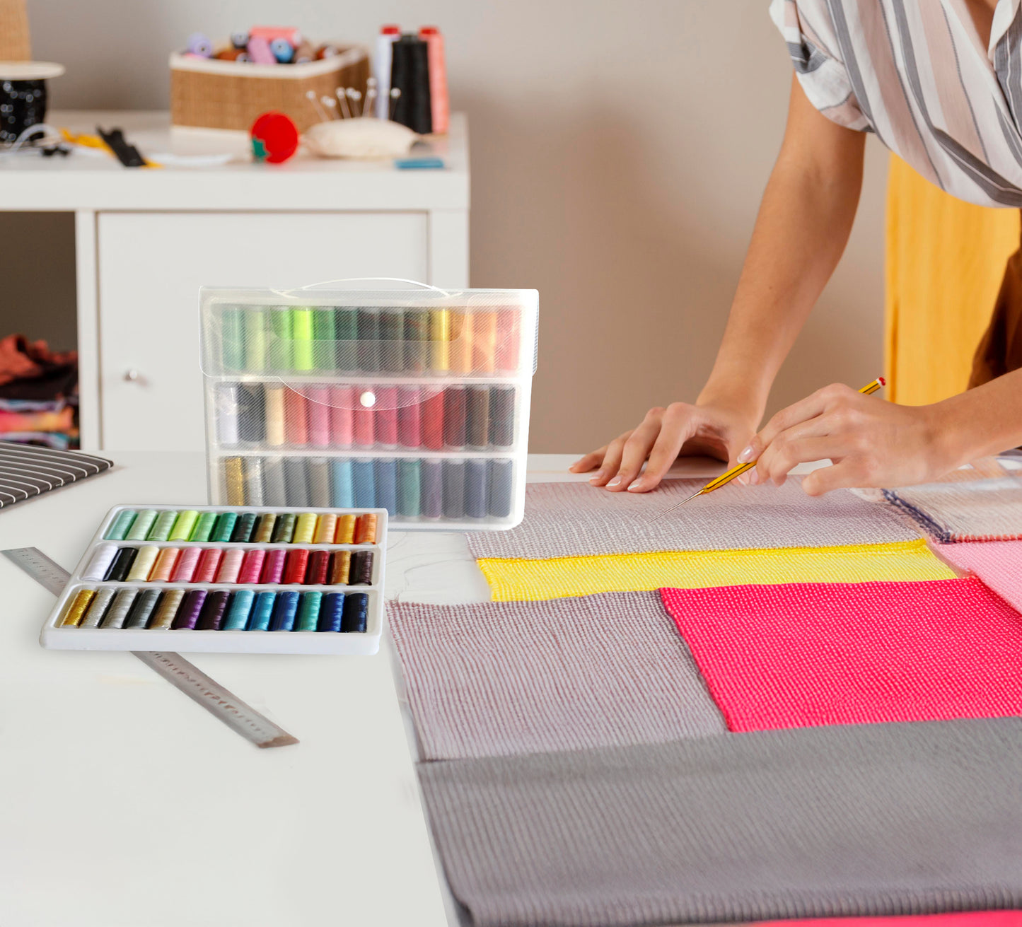 Imagine setting up your sewing station with everything you need, perfectly organized in front of you. The soft shimmer of the threads catches the light, and with each stitch, you feel the rhythm of creativity flow effortlessly. No searching, no stress — just the calm satisfaction of having exactly what you need at your fingertips.