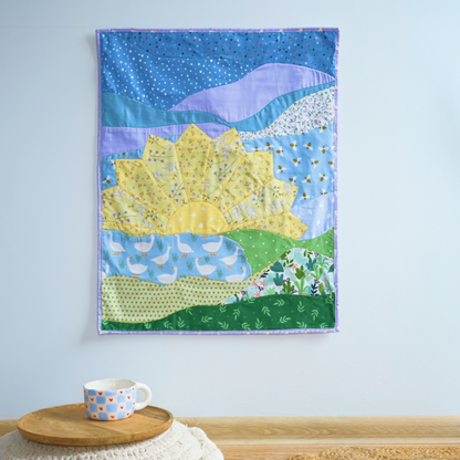 Add warmth and personality to your space with a quilted art piece that feels uplifting and handmade.
