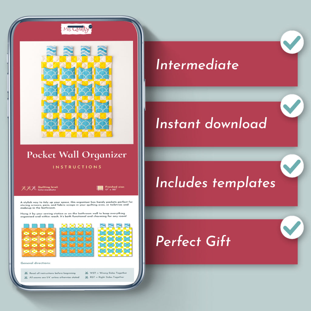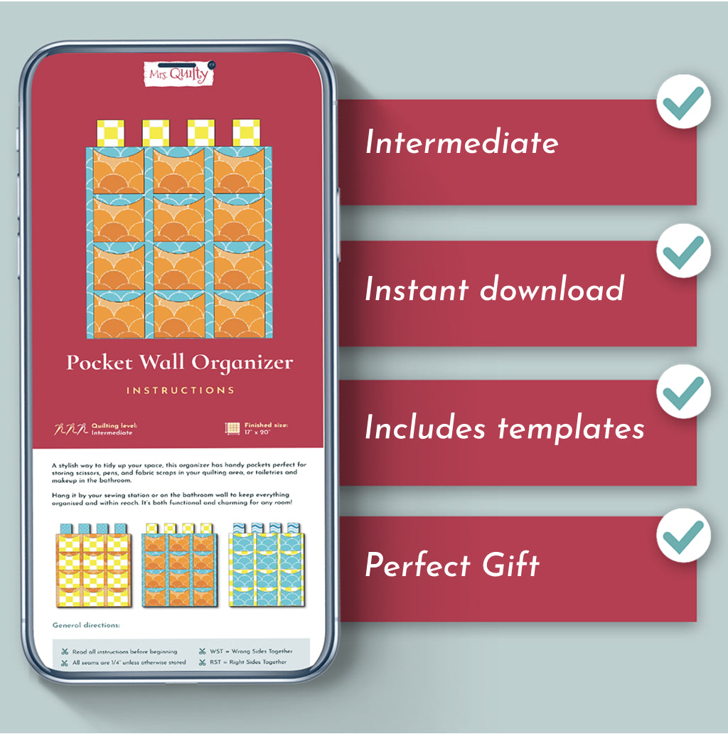 Join the many quilters who’ve discovered the perfect balance of beauty and function with this practical pattern. Start sewing today and create an organizer that will bring order and charm to your space.