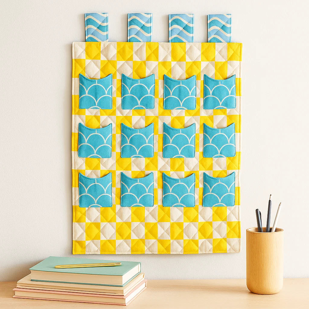 This quilted organizer is not just for storage — it’s a beautiful wall hanging that adds charm and organization to any room.